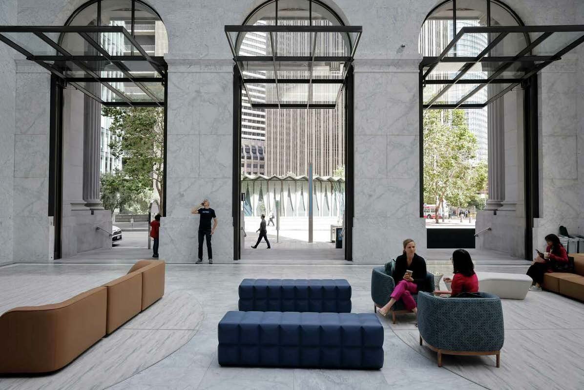 In the case of 101 California, the intersection is a 1-acre space near Market Street that replaces the 1982 original. Two blocks to the west is the redone 15th-floor rooftop terrace at 343 Sansome, from 1990. Head three blocks south to the corner of Bush and Sansome streets and you’ll encounter the marbled “conservatory” that fills the skylit shell of a 1910 banking temple now serving as the public space for One Sansome, a 42-story tower.