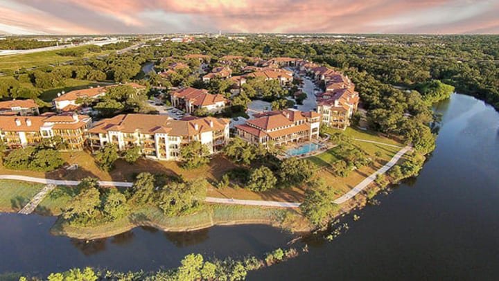 Barker Pacific Group. an affiliate of Sterling Real Estate Partners announces the sale of Muir Lake Luxury Apartments, a Class A, resort-style residential community developed by the local iconic developer, Larry Peel, in the Northwest Austin, Texas suburb of Cedar Park. It is characterized by breathtaking lake views, Italianate architectural design featuring carved stone columns, barrel-tiled roofs, and limestone masonry.